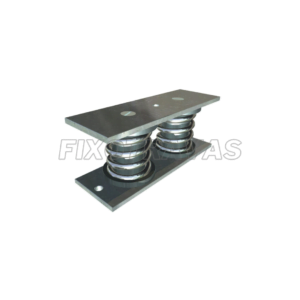 Sua geometria compacta e os acessórios que o acompanham (chumbadores, parafuso e porca) resulta na praticidade de instalação. Todas as molas recebem tratamento térmico, aumentando a resistência à fadiga e a vida útil do amortecedor. O modelo mola dupla segue basicamente a mesma composição do modelo mola simples, sendo o seu diferencial a associação em paralelo do conjunto mola/batente, que aumenta a resistência à carga, melhora a estabilidade do equipamento e mantém a deflexão similar aos demais modelos da linha.