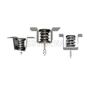 Criado para amortecer vibrações de equipamentos em suspensão, o modelo mola tração foi projetado para atuar em esforços verticais e angulares. o amortecedor é composto basicamente de um conjunto mola-batentes que resistem aos esforços de carregamento oriundos dos parafusos superior e inferior. sua geometria, de simples instalação, permite ajuste da altura correta por porcas ajustadoras presentes em seus parafusos.