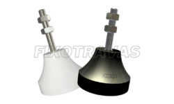 Ideal para transporte de equipamentos em veículos automotores. Conjunto de amortecedor mola/ tarugo em borracha, resistente à compressão, cisalhamento e tração.